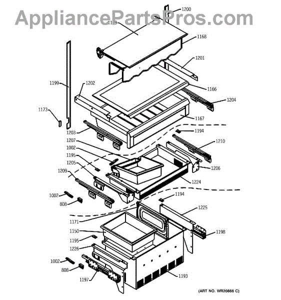 Ice tray assembly for bottom-mount refrigerators. Holds and stores ice cubes in the freezer compartment. Replace if cracked, broken, or missing.