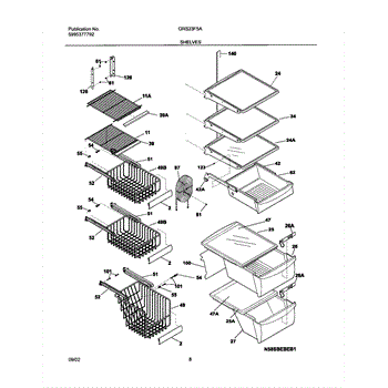 This shelf and trim assembly replaces a damaged or worn refrigerator shelf trim to restore a secure shelf edge and improve storage stability. It provides the finished trim piece that retains items and keeps the shelf seated correctly. What it does: