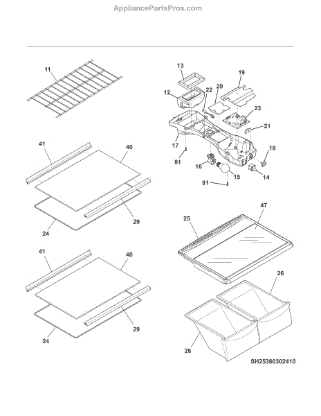 Parts for Kenmore 253.60402411 (25360402411, 253 60402411): Shelves Parts