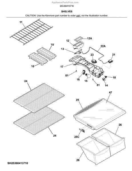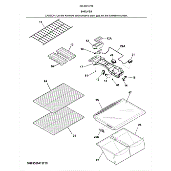 Parts for Kenmore 253.60413716 (25360413716, 253 60413716): Shelves Parts