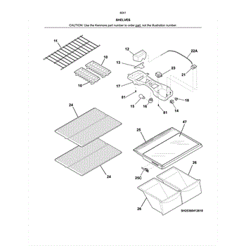 Parts for Kenmore 253.60419614 (25360419614, 253 60419614): Shelves Parts