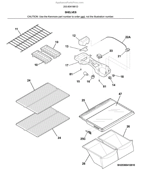 Parts for Kenmore 253.6041961D (2536041961D, 253 6041961D): Shelves Parts