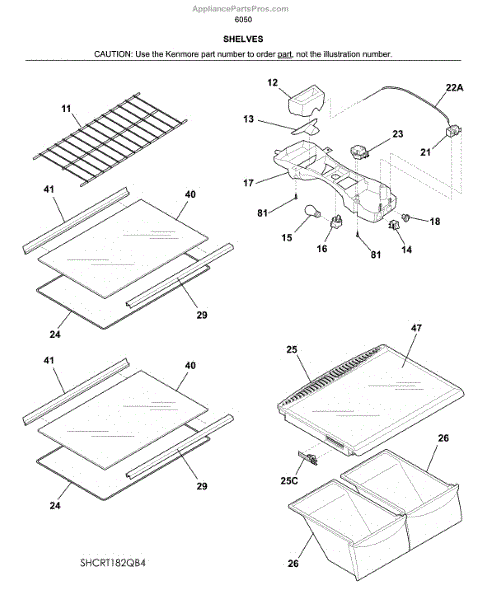 Parts for Kenmore 253.60505618 (25360505618, 253 60505618): Shelves Parts