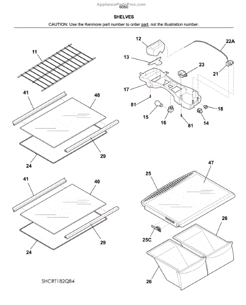 Parts for Kenmore 253.60509617 (25360509617, 253 60509617): Shelves Parts