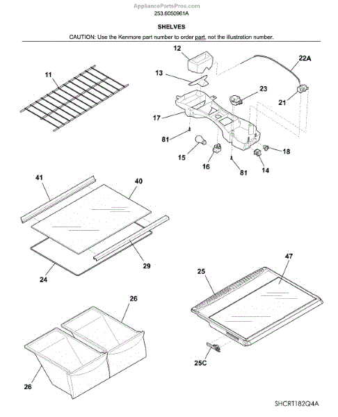 Parts for Kenmore 253.6050961A (2536050961A, 253 6050961A): Shelves Parts