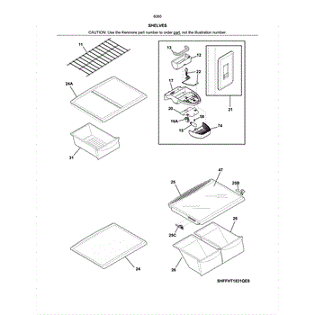 Parts for Kenmore 253.60609414 (25360609414, 253 60609414): Shelves Parts