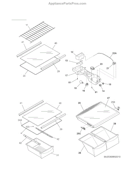 Parts for Kenmore 253.68894015 (25368894015, 253 68894015): Shelves Parts