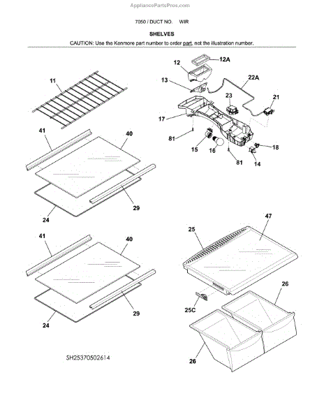 Parts for Kenmore 253.70502614 (25370502614, 253 70502614): Shelves Parts