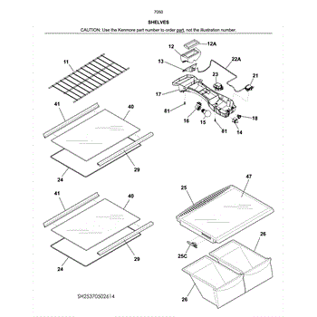 Parts for Kenmore 253.70502618 (25370502618, 253 70502618): Shelves Parts