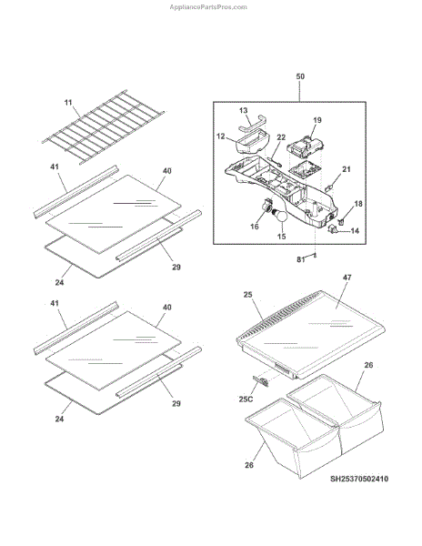 Parts for Kenmore 253.70505512 (25370505512, 253 70505512): Shelves Parts