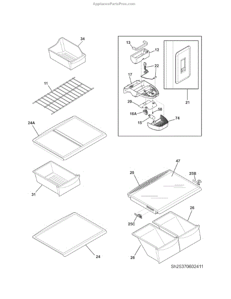 The Freezer Shelf is an OEM replacement part for Frigidaire freezers. It is a sturdy and durable wire or glass shelf designed to provide ample storage space within the freezer compartment, allowing you to organize and easily access frozen items. Measuring approximately 24-1/2" W x 12-1/2" D x 5/32" H, the shelf requires no hardware or tools for installation.