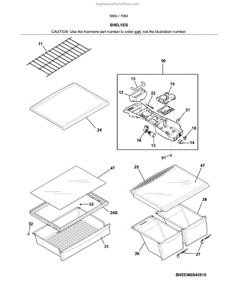 Parts for Kenmore 253.70649611 (25370649611, 253 70649611): Shelves Parts
