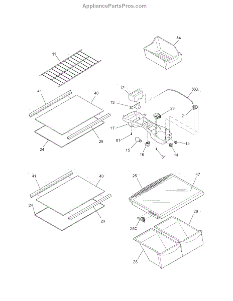 Parts for Kenmore 253.78884017 (25378884017, 253 78884017): Shelves Parts