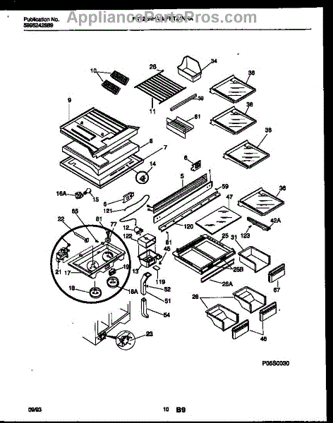 Secures and supports refrigerator shelves in proper position. Replace if cracked, broken, or shelves become loose or unstable. Verify fit with model number.