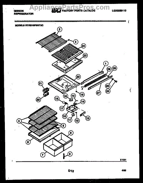Parts for Frigidaire RT19F8WT3C: 04 - Shelves And Supports Parts