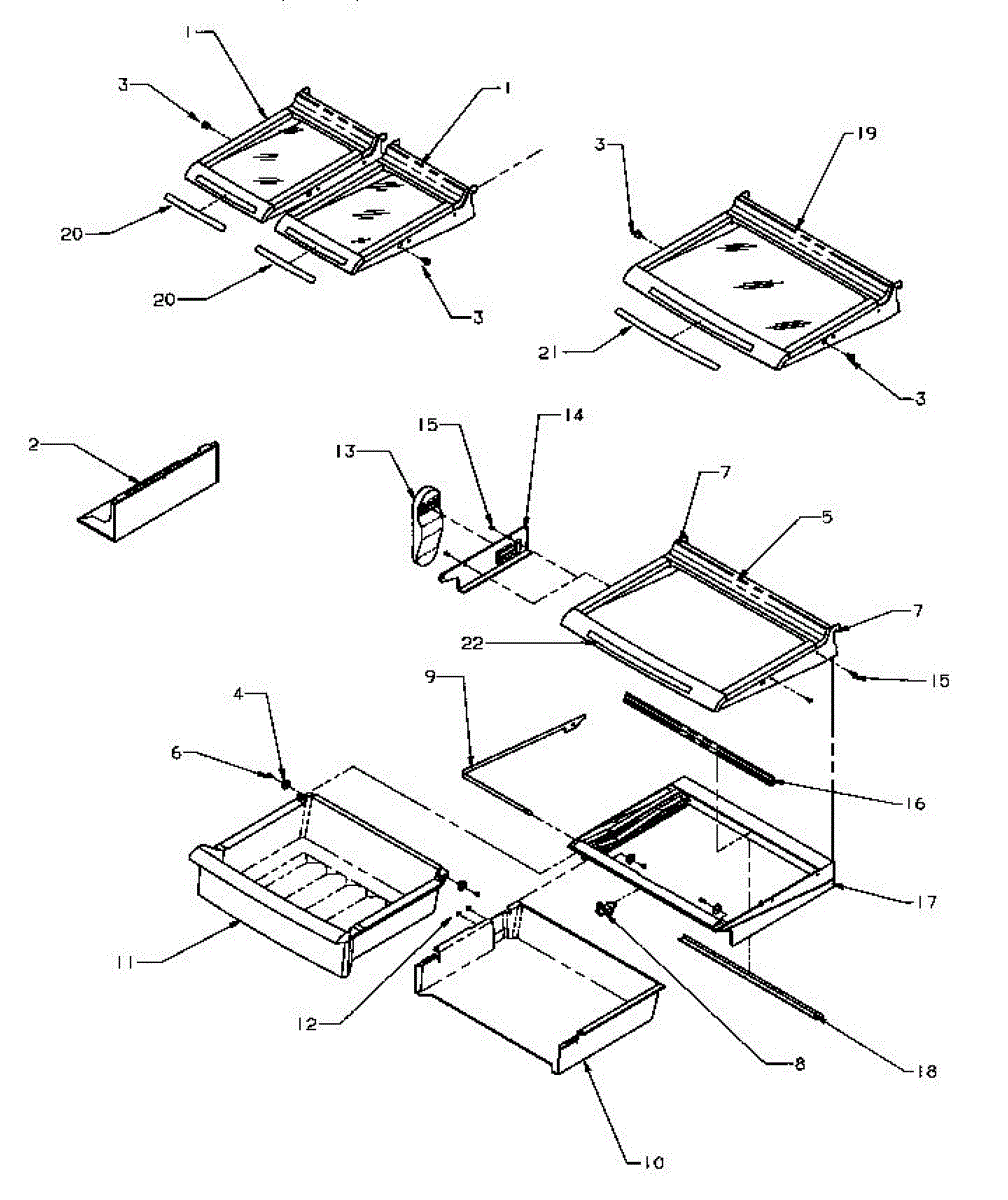 Parts for Amana SRD25S5E-P1190302WE: Shelving & Drawers (Refrigerator) Parts