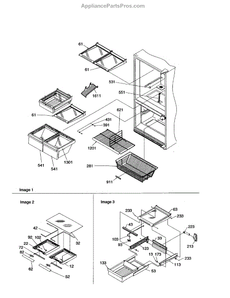 Parts for Amana BX21V2E-P1325031WB: Shelving Parts