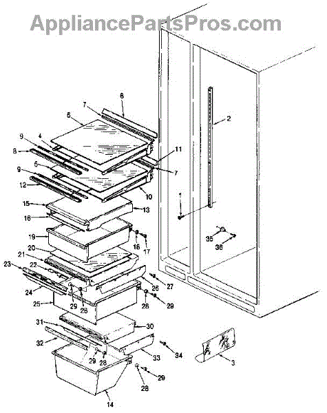 This factory screw secures appliance components to their mounting points. Replace missing, worn, or stripped hardware to restore a tight fit, proper alignment, and quieter operation across the affected assembly.
