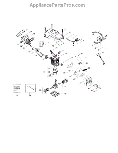 Parts for Poulan 2055LE TYPE 1: Shield / Cylinder / Crankshaft Parts