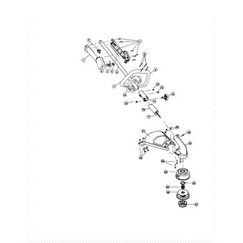 Lower flexible drive shaft for line trimmer attachments. Mounts inside the lower boom housing to drive the trimmer head. Replace when worn round or cracked.