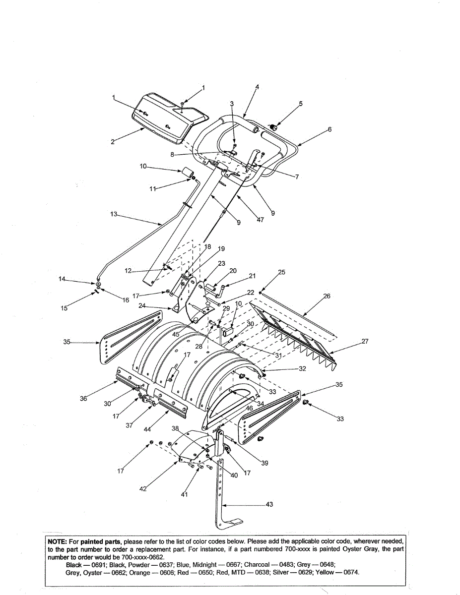 Protective shield that covers the tines on your tiller. Replace if cracked, broken, or missing to prevent debris from flying up during operation.