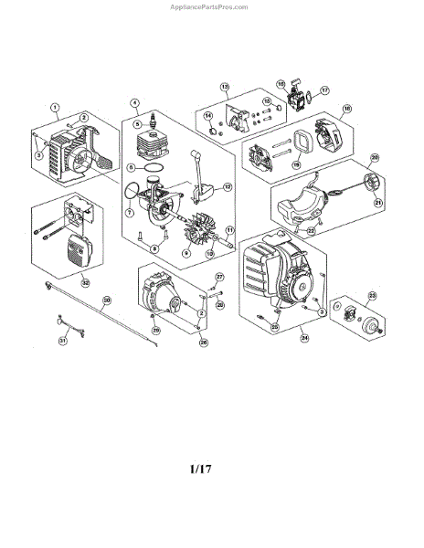 This is a short block assembly for a string trimmer. The short block consists of many of the engine components, including the cylinder and crank case, the piston and connecting rod, the crankshaft, the flywheel, the spark plugs, and the ignition module. This is a genuine OEM part and is sold individually. This assembly is compatible with Craftsman, Murray, Troy-Bilt, and Yard Man.A problem with any of the components of the engine will cause issues. For major failure of multiple components, the short block assembly contains all parts needed to repair the entire engine. Getting to the short block assembly requires taking the machine apart piece by piece. When removing the crankshaft, insert a 20-inch length of starter rope into the spark plug hole onto the piston, leaving some for removal. Using a wrench, rotate the clutch until the piston moves up and catches the rope, binding it and locking the crankshaft. When installing the new ignition module, be sure to use a spark plug gap spacer to ensure the proper gap between it and the magnets on the flywheel.