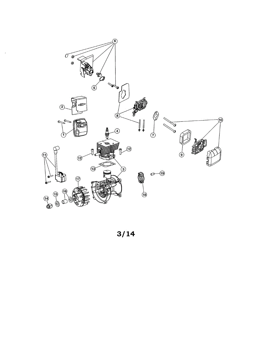 Muffler assembly for gas leaf blowers and line trimmers. Includes muffler and mounting components. Replace if cracked, rusted, or damaged. Installs on engine.