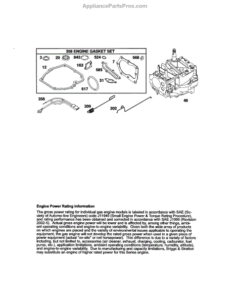 The cylinder head gasket sits between the cylinder head and the engine block. It has seals that allow the internal combustion process to occur, while also ensuring that coolant and oil do not blend as they leave the engine block and go to the head. This repair will require the use of wrenches, screwdrivers, pliers, and other equipment, and it will be necessary to purchase any other components in need of replacement at the time of the repair. This OEM cylinder head gasket replacement is a part for engines on lawn mowers, pressure washers, chipper and shredders, as well as other gas-powered devices from Briggs & Stratton, Craftsman, Toro, Cub Cadet, Lawn Boy, Simplicity, and other manufacturers.