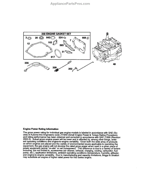The cylinder head gasket sits between the cylinder head and the engine block. It has seals that allow the internal combustion process to occur, while also ensuring that coolant and oil do not blend as they leave the engine block and go to the head. This repair will require the use of wrenches, screwdrivers, pliers, and other equipment, and it will be necessary to purchase any other components in need of replacement at the time of the repair. This OEM cylinder head gasket replacement is a part for engines on lawn mowers, pressure washers, chipper and shredders, as well as other gas-powered devices from Briggs & Stratton, Craftsman, Toro, Cub Cadet, Lawn Boy, Simplicity, and other manufacturers.
