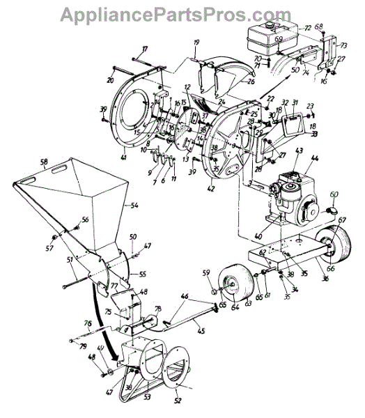 This is a chipper impeller assembly that can be used with a range of chippers and chipper-shredders. The impeller is the part of the chipper that rotates, and it is what allows for the chipping or shredding to take place. It will shred leaves, yard waste, and tree limbs. If there is an issue with the chipper impeller, it will reduce the efficiency of the machine. In some cases, it might not work at all. One of the signs that the impeller has problems is that it is turning slowly. It might also make a lot of noise.The impeller is a durable piece, but it does a lot of work. This means it is subject to wear and tear. Over time, it might become worn out or damaged, which will require a replacement. This replacement could be done by the owner. However, they need to remove the spark plug wire first and wear gloves to keep their hands safe.The chipper impeller assembly works for select machines from MTD, Troy-Bilt, Husky, and Yard Machines. This is a genuine OEM replacement part sourced from the manufacturer, and it is sold individually.