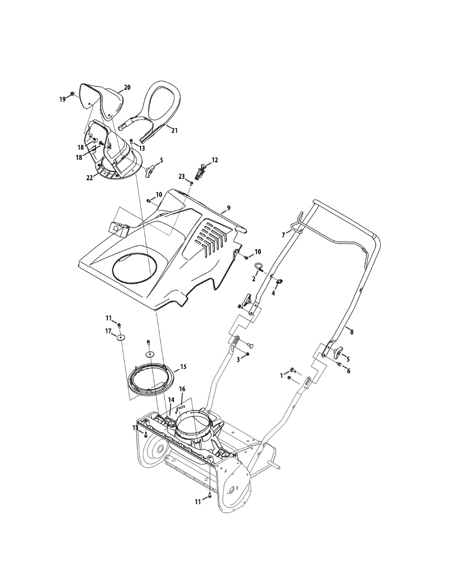 Upper chute assembly for gas snow throwers. Directs snow discharge from the auger housing. Replace if cracked, damaged, or missing. Installs on top.