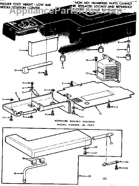 Parts for Kenmore 158.12312 (15812312, 158 12312): Shuttle Cover And Work Table Parts