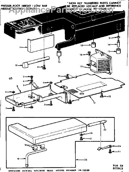 Parts for Kenmore 158.12520 (15812520, 158 12520): Shuttle Cover And Work Table Parts