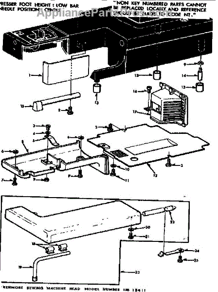 Parts for Kenmore 158.13411 (15813411, 158 13411): Shuttle Cover And Work Table Parts