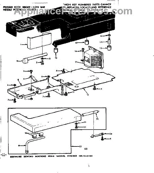 Parts for Kenmore 158.1345180 (1581345180, 158 1345180): Shuttle Cover And Work Table Parts