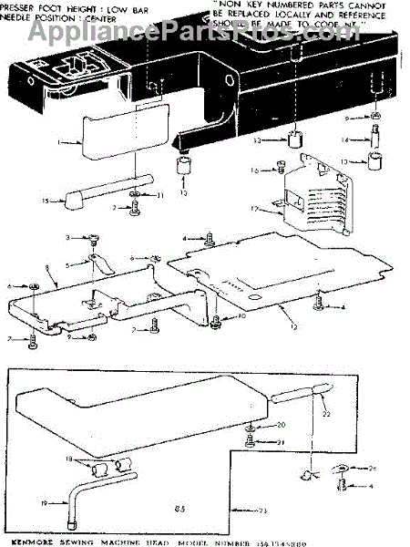 Parts for Kenmore 158.1345380 (1581345380, 158 1345380): Shuttle Cover And Work Table Parts