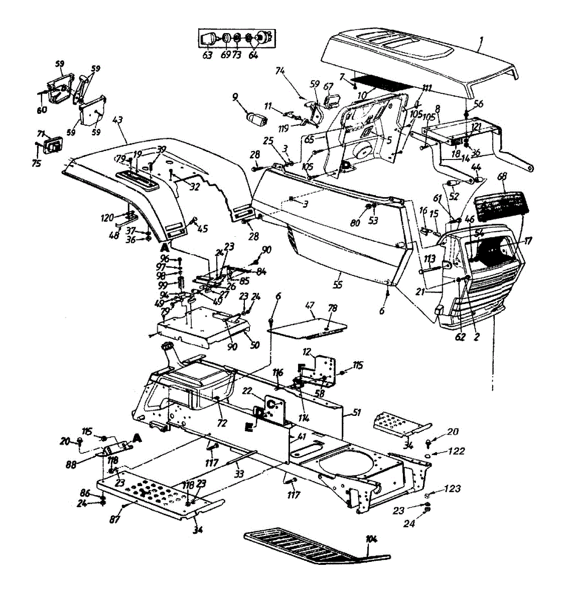 Replacement headlight lens with logo for garden tractors. Restores visibility and appearance when original lens is cracked, broken, or missing.