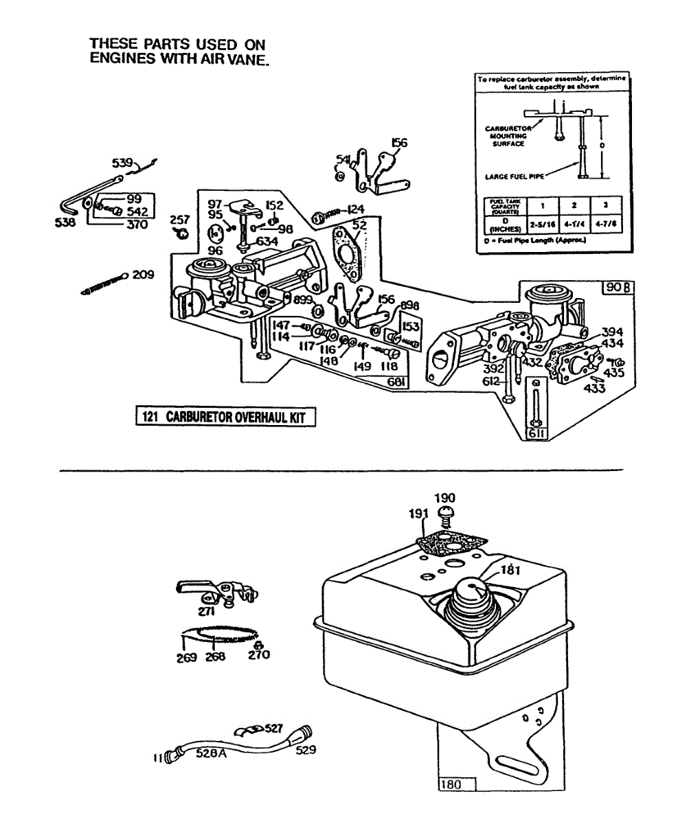 This tube-pick up was created for three to five horsepower horizontal and five horsepower vertical engines with a two to three-quart tank and a pulse jet carburetor. As part of the carburetor, the tube-pick up moves gas from the float bowl to the main bod