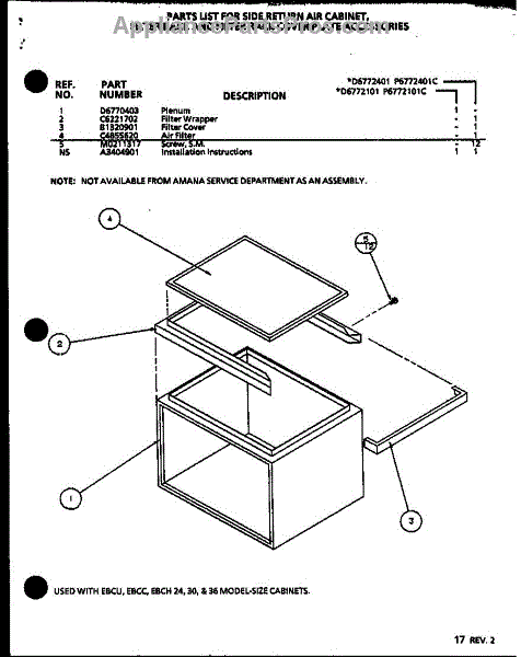 Parts for Amana EBCC3600MBM/P9846203C: Side Return Air Cabinet (D6772401 / P6772401c) Parts