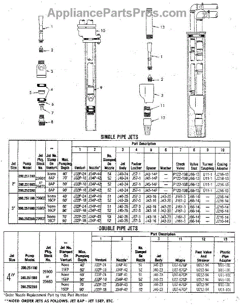 Parts for Craftsman 390251980: Single And Double Pipe Jets Parts