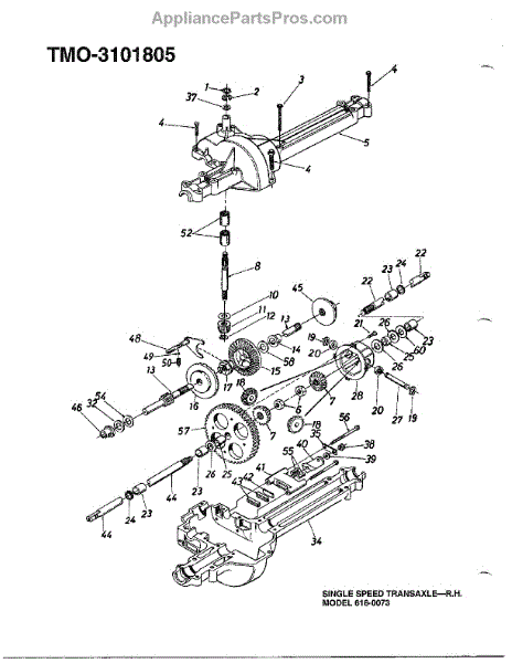 Parts for Mtd 3101805: Single Speed Transaxle - Rh Parts