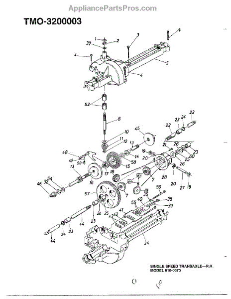 Parts for Mtd 3200003: Single Speed Transaxle-R Parts