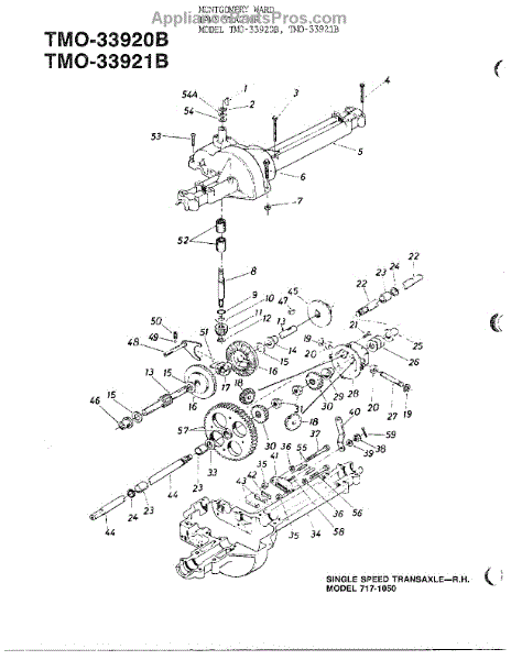Parts for Mtd 33920B: Single Speed Transaxle-R Parts
