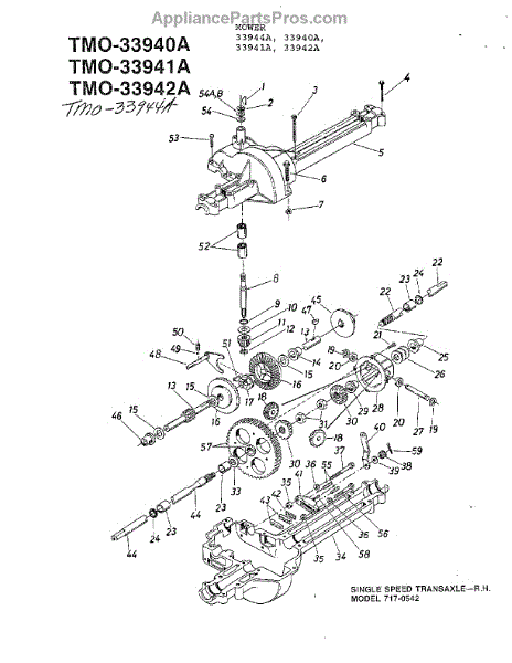 Parts for Mtd 33957A: Single Speed Transaxle-R Parts