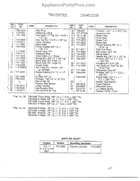 Parts for Mtd 136H451E088: Single Speed Transaxle Lh Page 2 Parts