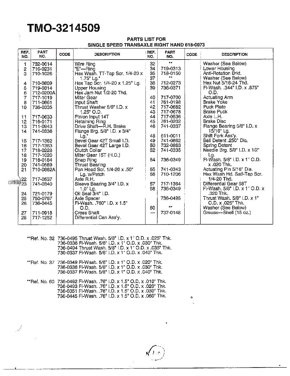 Parts for Mtd 3214509: Single Speed Transaxle Page 2 Parts