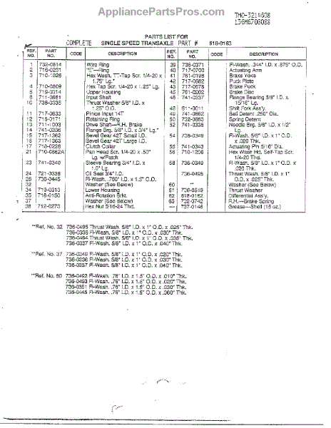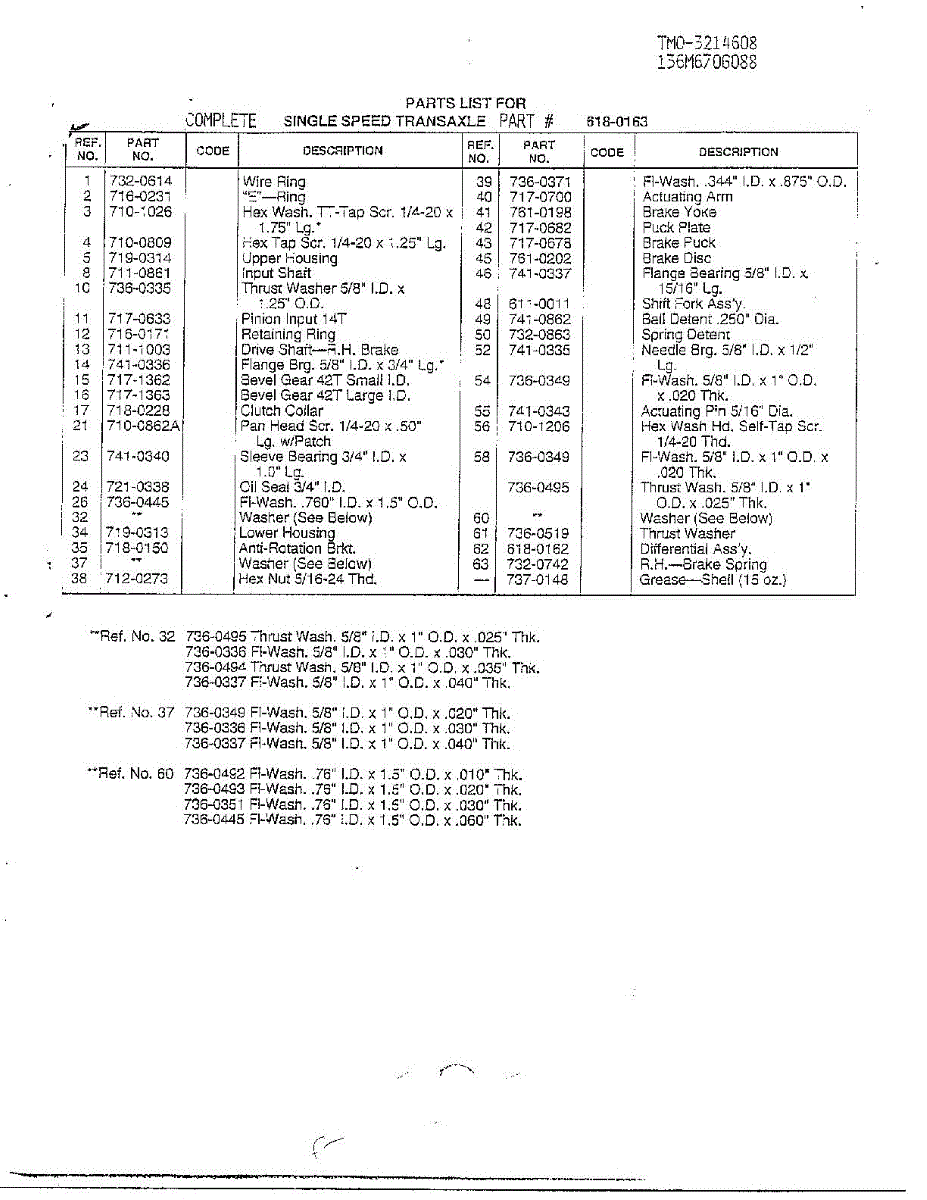 Parts for Mtd 3214608: Single Speed Transaxle Page 2 Parts