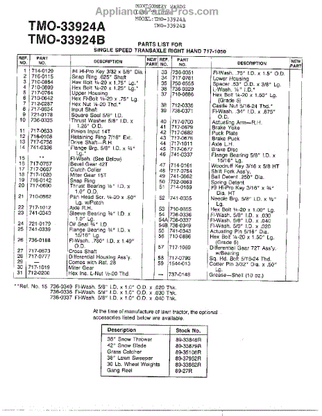 Parts for Mtd 33924B: Single Speed Transaxle Page 2 Parts