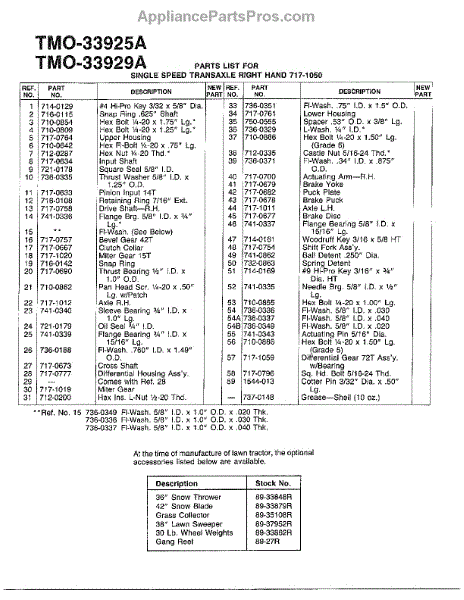 Parts for Mtd 33925A: Single Speed Transaxle-R Page 2 Parts