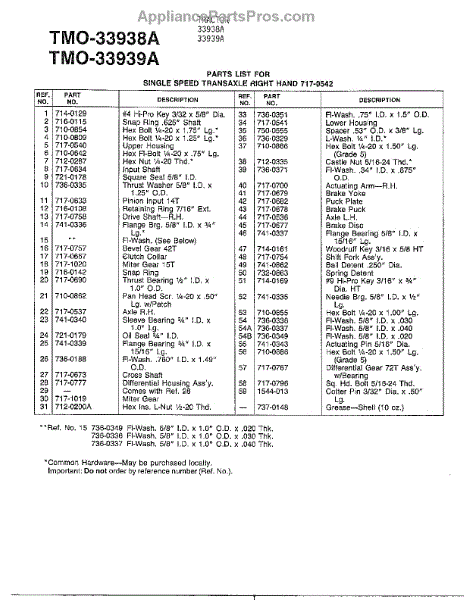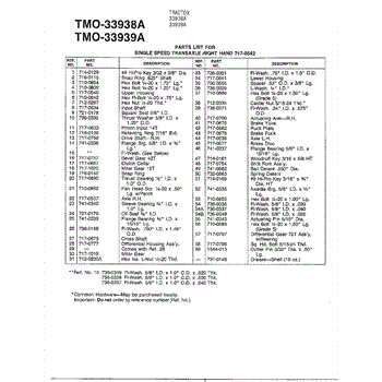 Parts for Mtd 33939A: Single Speed Transaxle Page 2 Parts
